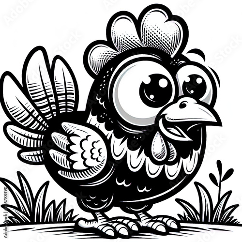 Obraz premium Eine schwarz weiße Vektorgrafik eines lustigen Huhnes