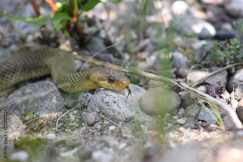 © rbkelle, Obraz premium Eine Äskulapnatter züngelt (Zunge)