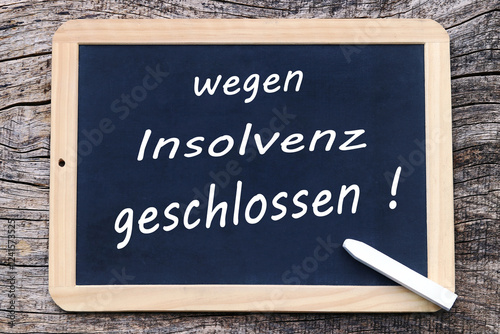 © Astrid Gast, Fototapeta premium Eine Tafel mit der Aufschrift wegen Insolvenz geschlossen