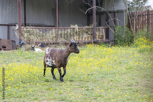 © tamaslaza3, Fototapeta premium Eine Ziege im Bauernhof,