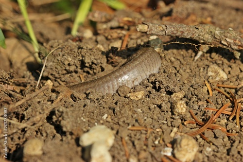 Fototapeta premium Eingegrabene Blindschleiche (Anguis fragilis) am Dörnberg