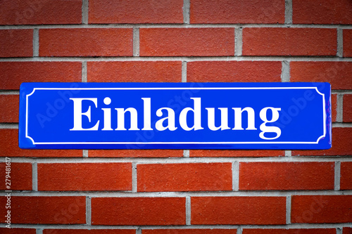© Daniel Ernst, Fototapeta premium Einladung blau an Backsteinwand
