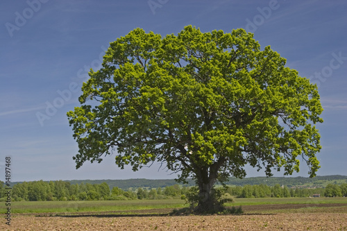 Obraz premium Einsamer Laubbaum mit Acker