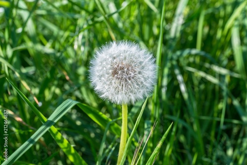 Fototapeta premium Einzelne Pusteblume in einer Wiese