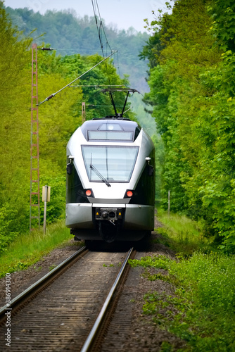 Naklejka premium Eisenbahn Nahverkehr Triebwagen Strecke Gleis Zug eingleisig Schienen Verkehr...