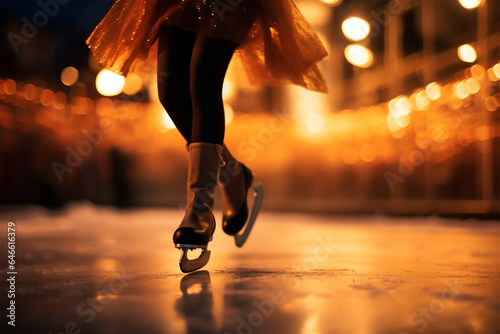 Fototapeta premium Eiskunstlaufzauber: Anmutige Frau zeigt künstlerische Leistung auf dem Eis