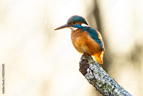 Fototapeta premium Eisvogel im Herbst auf einem Ast / Vogel / Kingfisher