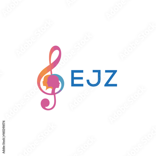 © MDENAMUL, Fototapeta premium EJZ “Creative music logo with human silhouettes and treble clef in gradient colors, EJZ Later Logo, modern artistic design isolated on white background”
