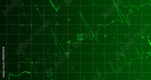 © PhoenixStock, Fototapeta premium EKG ECG Cardiogram moving healthcare medical bg. Health innovation concept with hexagons biotechnology and chemistry molecules bg. Pharmacy DNA presentation infographic medicine drugs nurse aid.