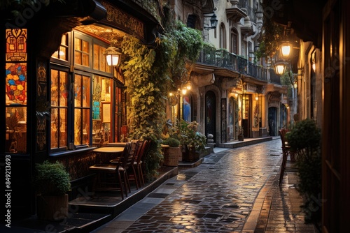 © JONATAS, Fototapeta premium El Born, Barcelona Vibrant nightlife on charming streets., generative IA