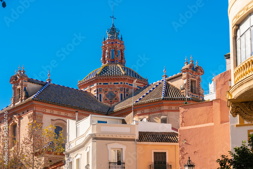 © TambolyPhotodesign, Fototapeta premium El Divino Salvador church with historic buildings in the foreground