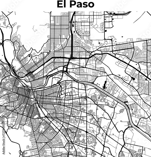 Naklejka premium El Paso City Map, Cartography Map, Street Layout Map