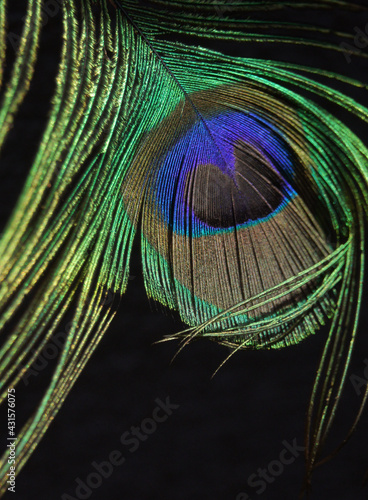 © Andre, Naklejka premium El regalo, detalle pluma pavo real con cámara sony. Imágenes de una mujer latina.