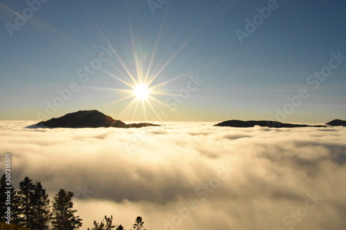© Pachama, Obraz premium El sol se levanta de su cama de nubes