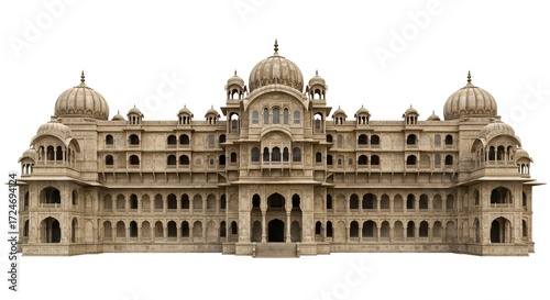 © Agnes, Fototapeta premium Elaborate palace with domes arches and intricate stonework set against a clear white background