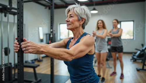 © Vera, Obraz premium Elder woman exercising with strength in gym, promoting fitness empowerment