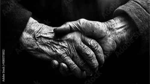 Fototapeta premium Elderly couple holding hands, with deep facial lines showing the beauty of age and shared life