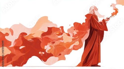 Fototapeta premium Elderly figure creating magic