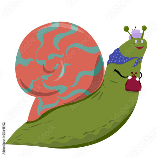 Naklejka premium Elderly grandmother snail with a purse in his hands