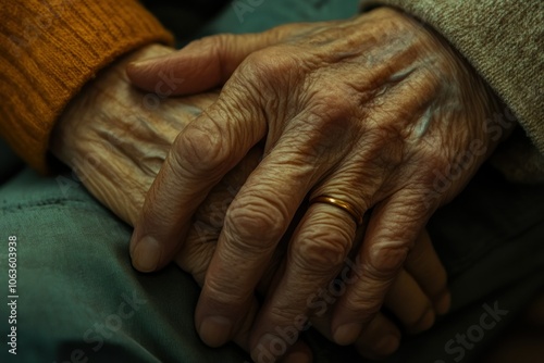 © ABDUL, Fototapeta premium Elderly Hands Resting Together in Close-Up View