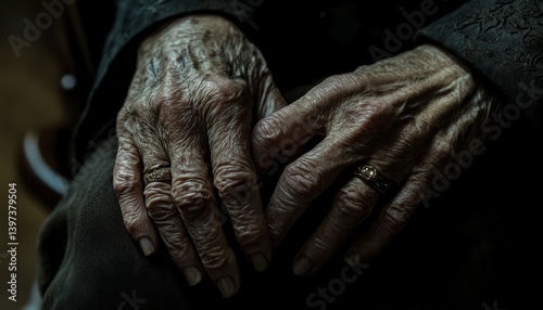 Fototapeta premium Elderly Hands with Rings in Low Light
