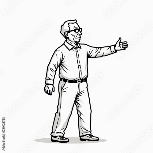 © Polina, Obraz premium Elderly man gesturing with hand while standing in casual attire
