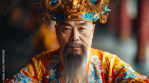 Obraz premium Elderly man in traditional Chinese clothing. Cultural tradition concept.