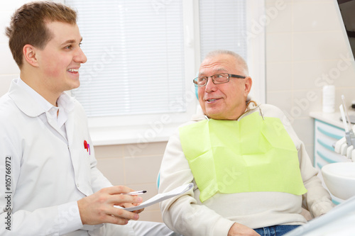 Obraz premium Elderly man on a review of a dentist, sitting in a chair