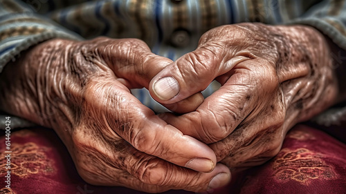Fototapeta premium Elderly man's hands, concept of longevity, poverty and memories, for...