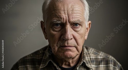 © Vyatcheslav, Fototapeta premium Elderly man showing stern expression against plain background