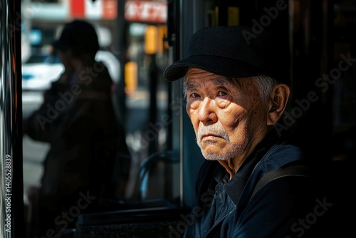 © Hapun, Fototapeta premium Elderly Man Sitting by a Window in Sunlight