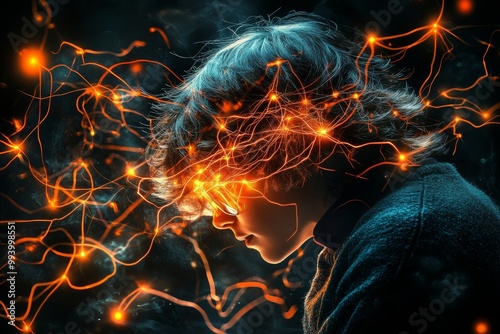 Obraz premium Elderly man with a glowing burst of energy from his head symbolizing...