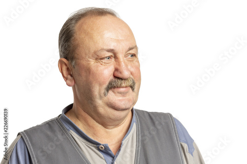© Анна Демидова, Obraz premium Elderly man with a mustache laughing, close-up