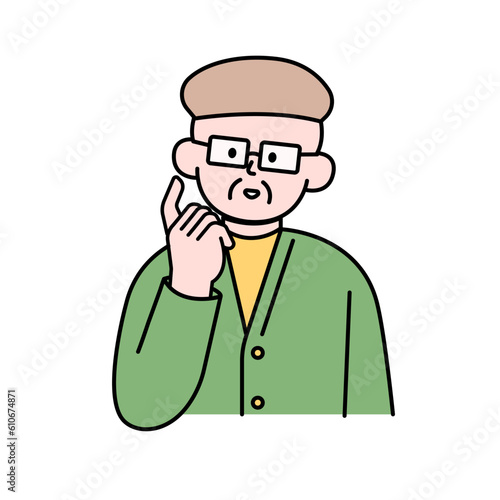 © studio.koon, Obraz premium Elderly Man Wondering, Simple Style Vector illustration.