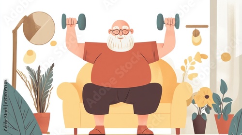 © Lesuna, Naklejka premium Elderly Man Working Out at Home