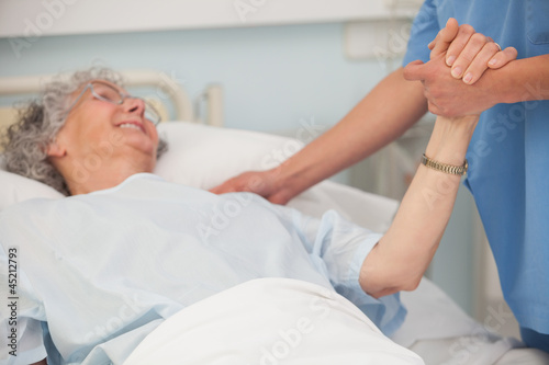 © WavebreakmediaMicro, Obraz premium Elderly patient holding hand of nurse