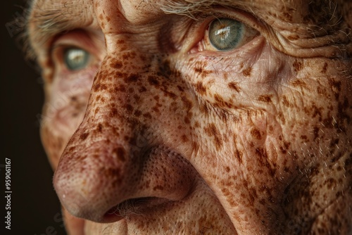 Obraz premium Elderly portrait with freckles and wrinkles