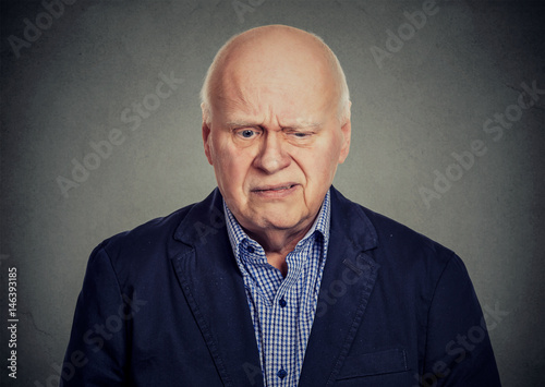 © pathdoc, Obraz premium Elderly sad skeptical man looking down