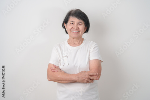 Obraz premium Elderly with White ribbon for concept November Lung Cancer Awareness month, Stop Violence Against Women, Adoption, May Retinoblastoma, Action for Women Health, March Remembrance, October Osteoporosis