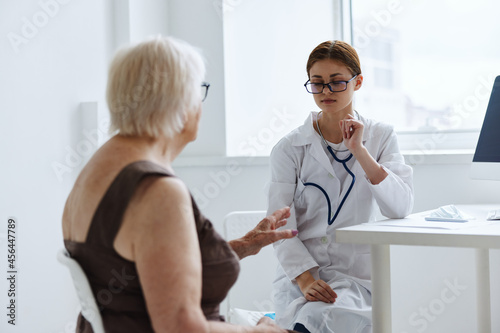 Fototapeta premium elderly woman with glasses examination by a doctor health diagnostics