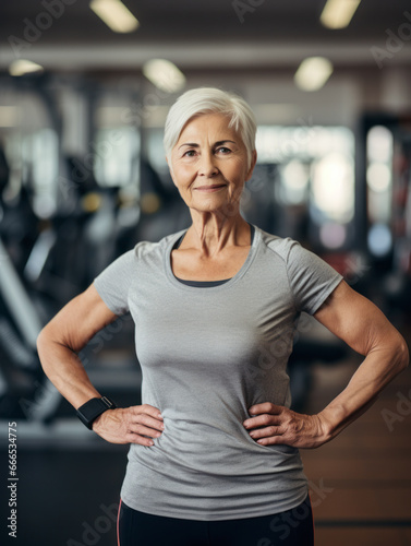 © kalafoto, Fototapeta premium Elderly women exercise at the gym