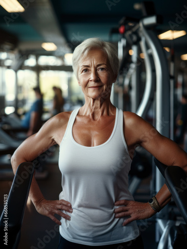 © kalafoto, Fototapeta premium Elderly women exercise at the gym