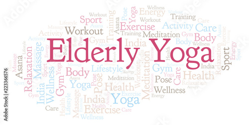 Obraz premium Elderly Yoga word cloud.