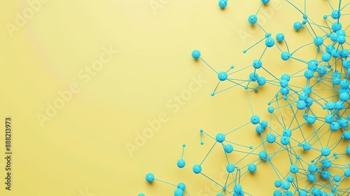 © Salman, Fototapeta premium Electric blue dots linked by cyan threads on a soft yellow canvas, text space in the top right