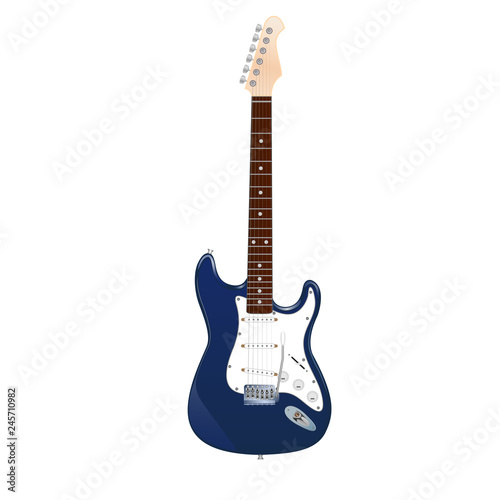 © Yan Tolkovski, Obraz premium electric blue guitar with white pickguard on white background