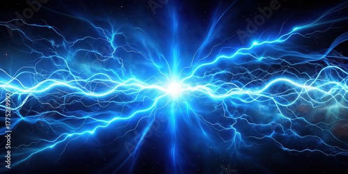 Obraz premium Electric blue lightning bolts illuminate a swirling plasma background