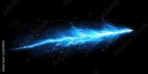 © Ольга Филиппова, Obraz premium Electric blue lightning crackles against a stark black canvas, punctuated by tiny, bright white sparks