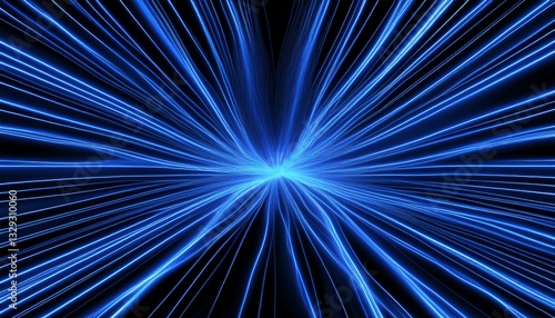 Fototapeta premium Electric blue lines pulse and dance over a deep black background, creating a...