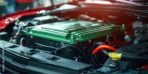 © Nice Seven, Fototapeta premium Electric Car Engine Closeup