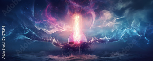 Obraz premium Electric energy and light burst emanating from bulb underwater. Digital art...